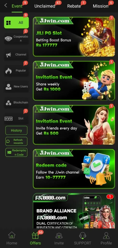Another big advantage is local payment support. JJWIN allows users to deposit and withdraw money using JazzCash and Easypaisa. This is very helpful because users do not need bank cards or international accounts. Payments are quick and easy.