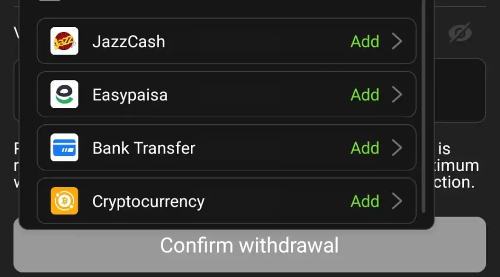 - Select your withdrawal method (JazzCash or Easypaisa).